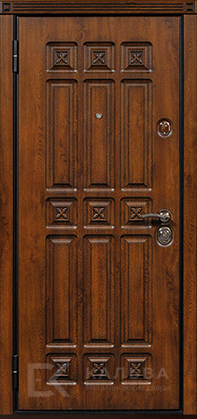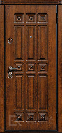 Фото «Железная дверь под орех с классической филёнкой и квадратами №7»