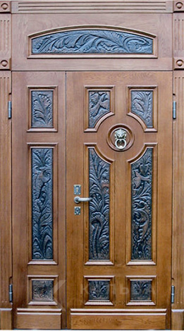 Фото «Металлическая двустворчатая дверь с МДФ и круглым остеклением №115»